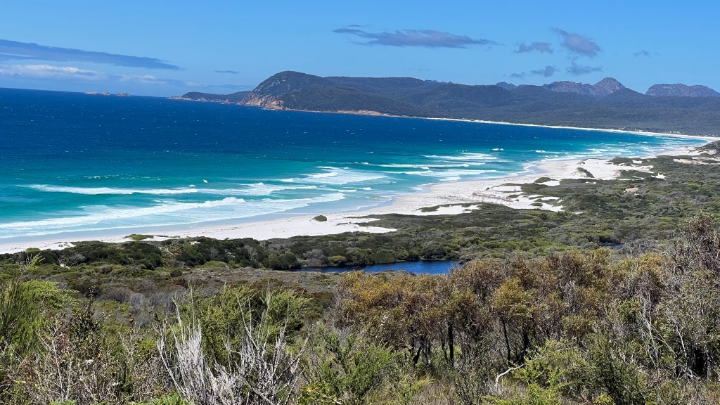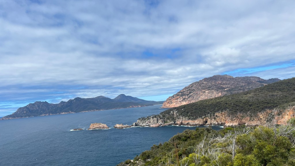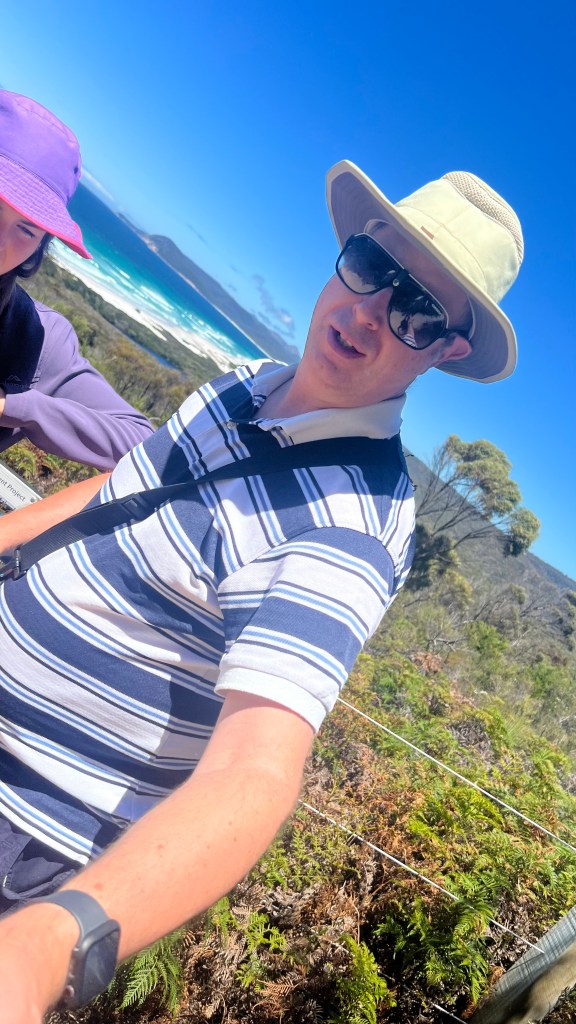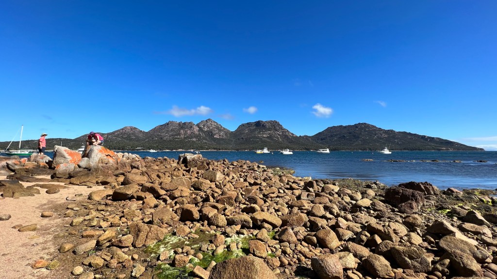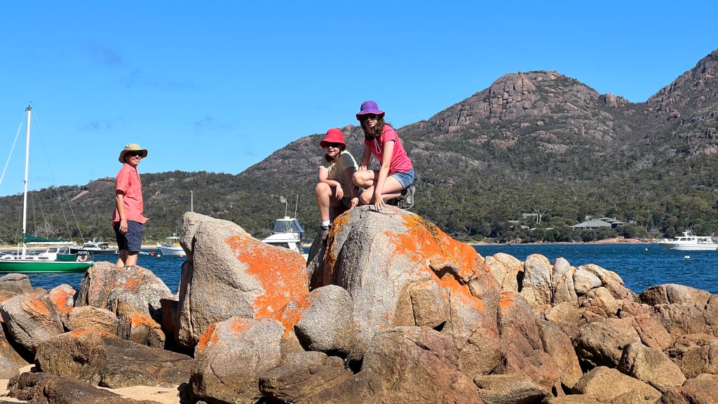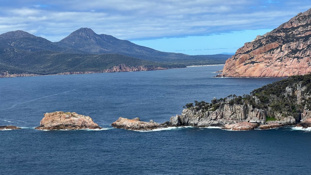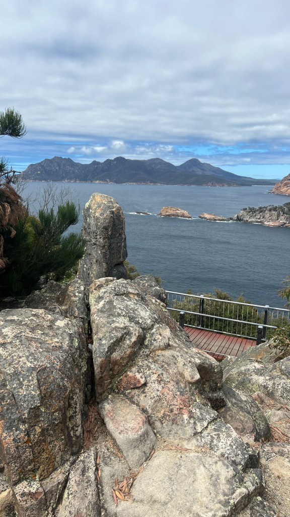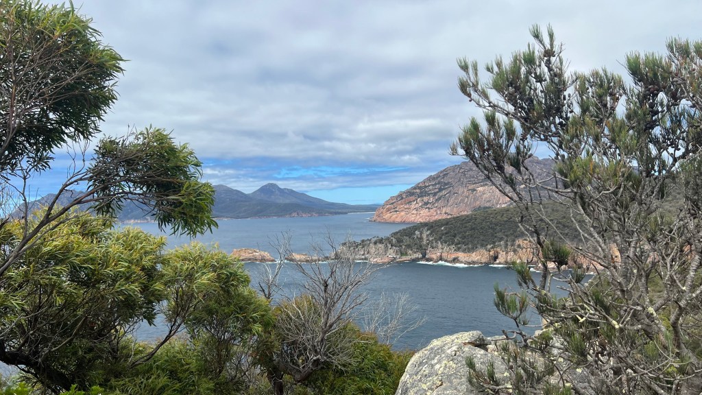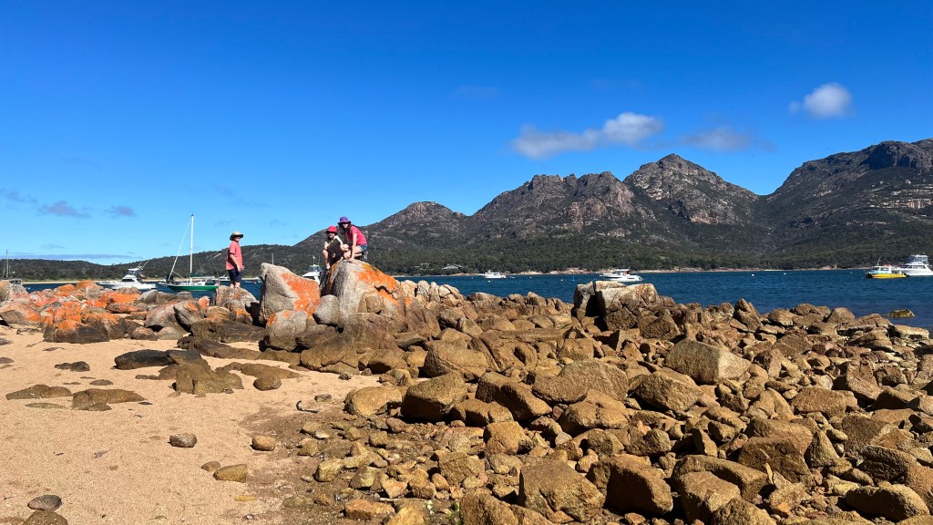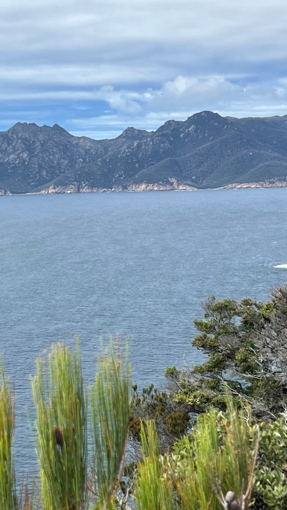 After a late breakfast we set out to explore Freycinet National Park. Our first stop was Cape Tourville and its lighthouse. There were lovely views back to Wineglass Bay, purportedly one of the top 10 beaches in the world!