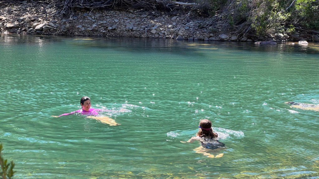 The next stop was at Aspley’s Water Hole where Emma and Christina had a swim. Christina not deterred by not having a swimming costume – she was able to borrow Emma’s rashie top and board shorts.